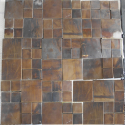 用铜材做古铜色成本高昂,本公司一直致力于开发用其他金属做仿古铜色的工艺,终于在近日研制成功不锈钢仿古铜工艺,本工艺可以用于马赛克、五金家具、灯饰、纽扣等,完全可以达到仿古铜的效果。本工艺很大程度上降低了生产成本,现正在向各大厂家推广本工艺,已有厂家开始应用本工艺生产仿古铜马赛克,效果令客户满意。